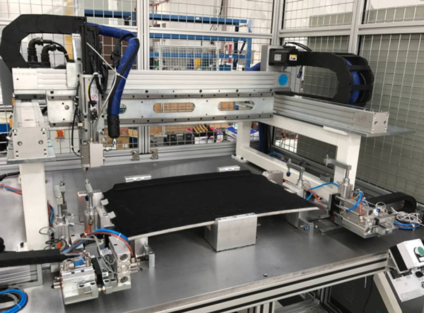 Skylight visor spray glue assembly tooling